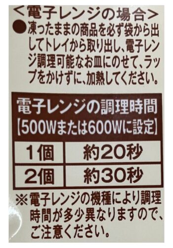 ・凍ったままの商品を必ず袋から取り出し、電子レンジで調理可能なお皿にのせてラップをかけずに、加熱してください。